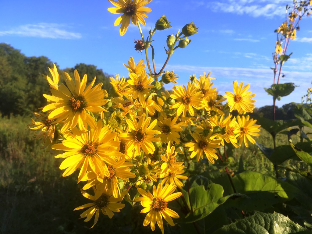 I thought these lovelies towering over me were a sort of sunflower, but I checked using my phone app and identified it as a cup plant. Despite it being a native plant in the US, it is now classified as an invasive species. That sounds wrong. Sounds to me like we’re the invasive species.