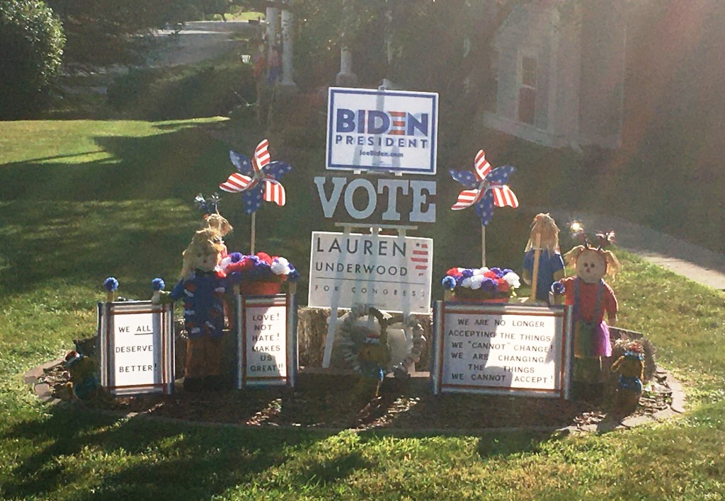 I couldn’t help but notice that I have unintentionally arranged the signs like a middle school dance – girls on one side and boys on the other. It’s certainly not a special shrine to Joe Biden like the one that I saw when I biked through our old neighborhood.