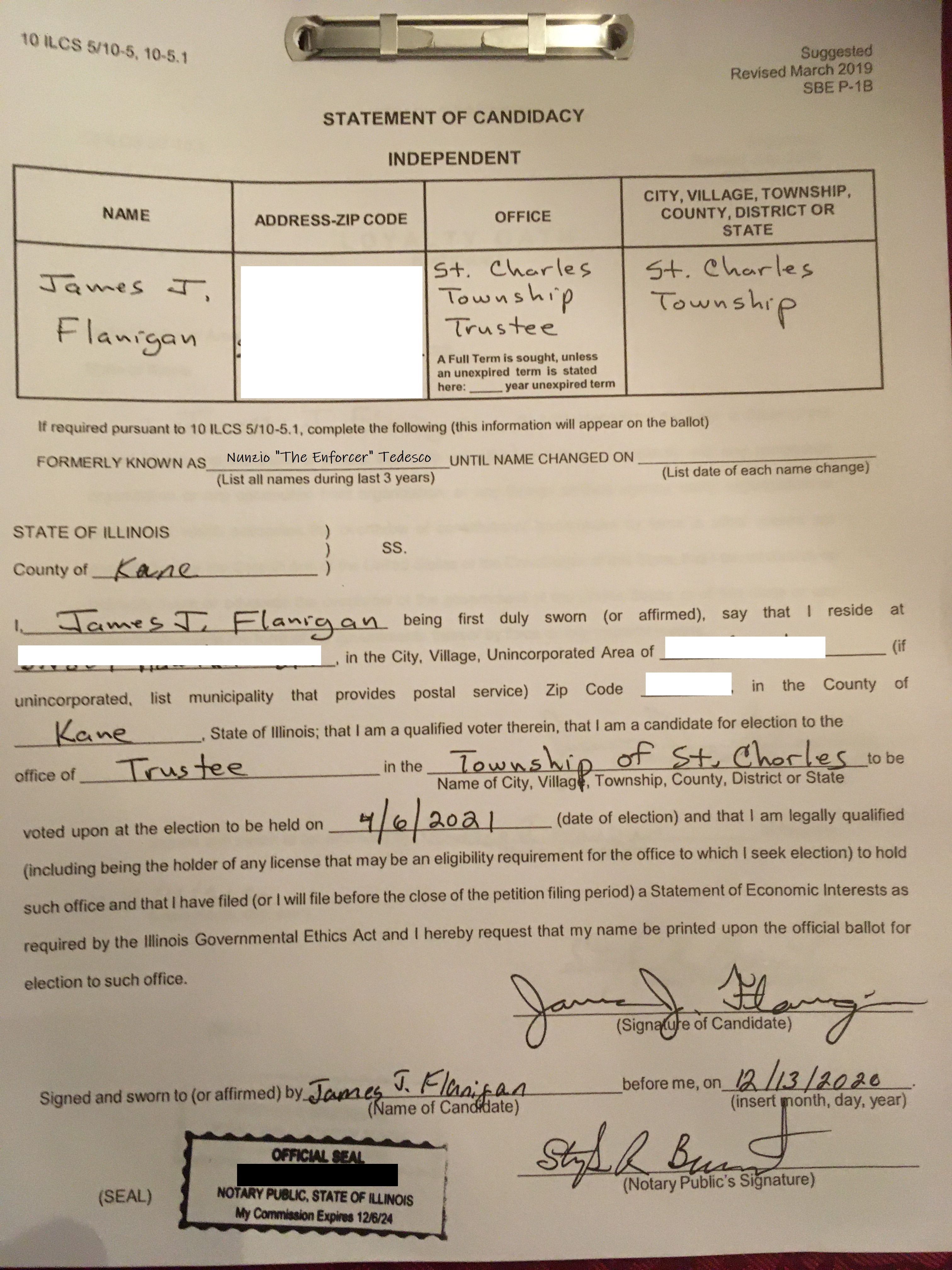 I was a bit nervous about revealing my “professional” alias on my Statement of Candidacy below …