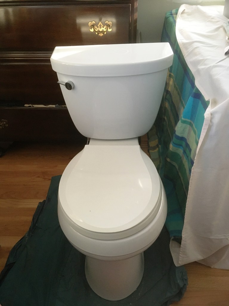 That’s my favorite toilet of all time. The height is just right and it never clogs. So, I decided to keep it after removing it. It is sitting right next to our bed now, and let me tell you, I have gotten really spoiled. It is super convenient for nighttime use.