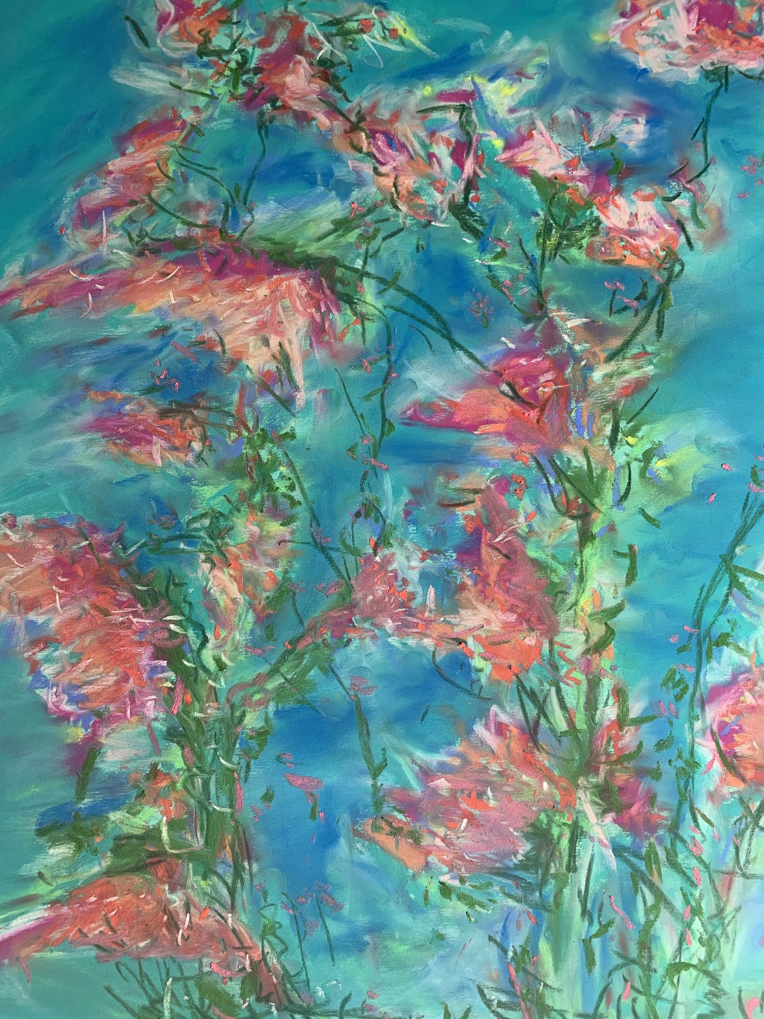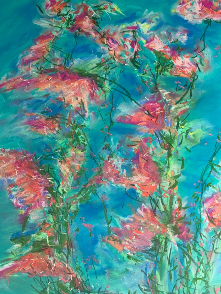 The artist’s name is Linda and here’s her online studio … riverjazz.studio. My personal favorites are her abstracts and florals. Here’s an example of one of them she created just the other night …