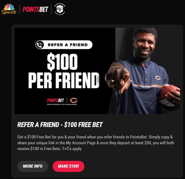 Then, find sign-up offers giving you free money. Every online sports book is offering them, like this one from Points Bet …