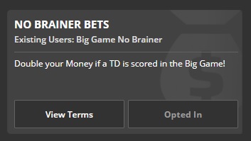 This is known as an arbitrage bet, where both sides of a contest are bet with net profit guaranteed regardless of the result. I will have 3 other arbitrage bets going for the Super Bowl using boosted odds that will net me a minimum of $25 guaranteed. That is how I slowly built my $1400 bankroll along with taking advantage of all the “no brainer” promotional bets that get offered to entice you to bet with a particular sports book. Here’s Draftkings giving all bettors a chance to double the max wager of $10 if a touchdown is scored in the Super Bowl.
