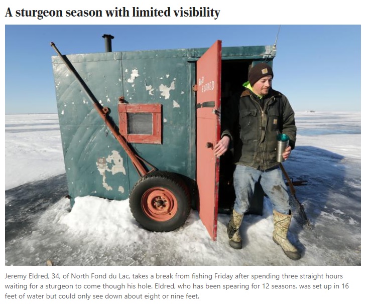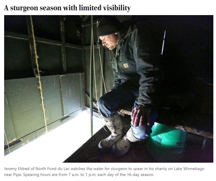 That’s why I’m not in the sturgeon spearing business. First, there’s no way my wife joins me to sit in any shanty other than our own house. And I did the math. 50 years divided by 7 fish = 1 fish every 7 years from which to harvest potential caviar. That’s a bad business model to use. Maybe that Wisconsin sturgeon expert had the right idea hatching that egg-stealing scheme after all.