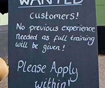 I just hope they at least believe in floors. I have a fear of falling into nothingness. Anyway, my advice is a bit more direct, “The only good customer is a paying customer.”