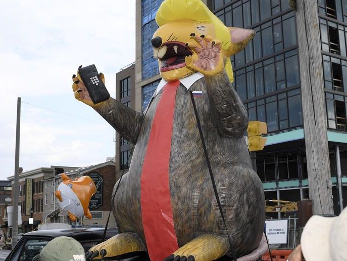 Like hell it’s not. No self-respecting Trump hater would ever erect a Trump statue unless it looked more like this.