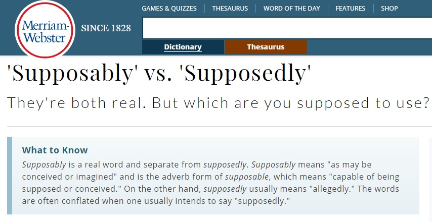 So, “Jim is supposably a successful blogger” is correct either way. (Editor’s Note: Supposably correct, but false)