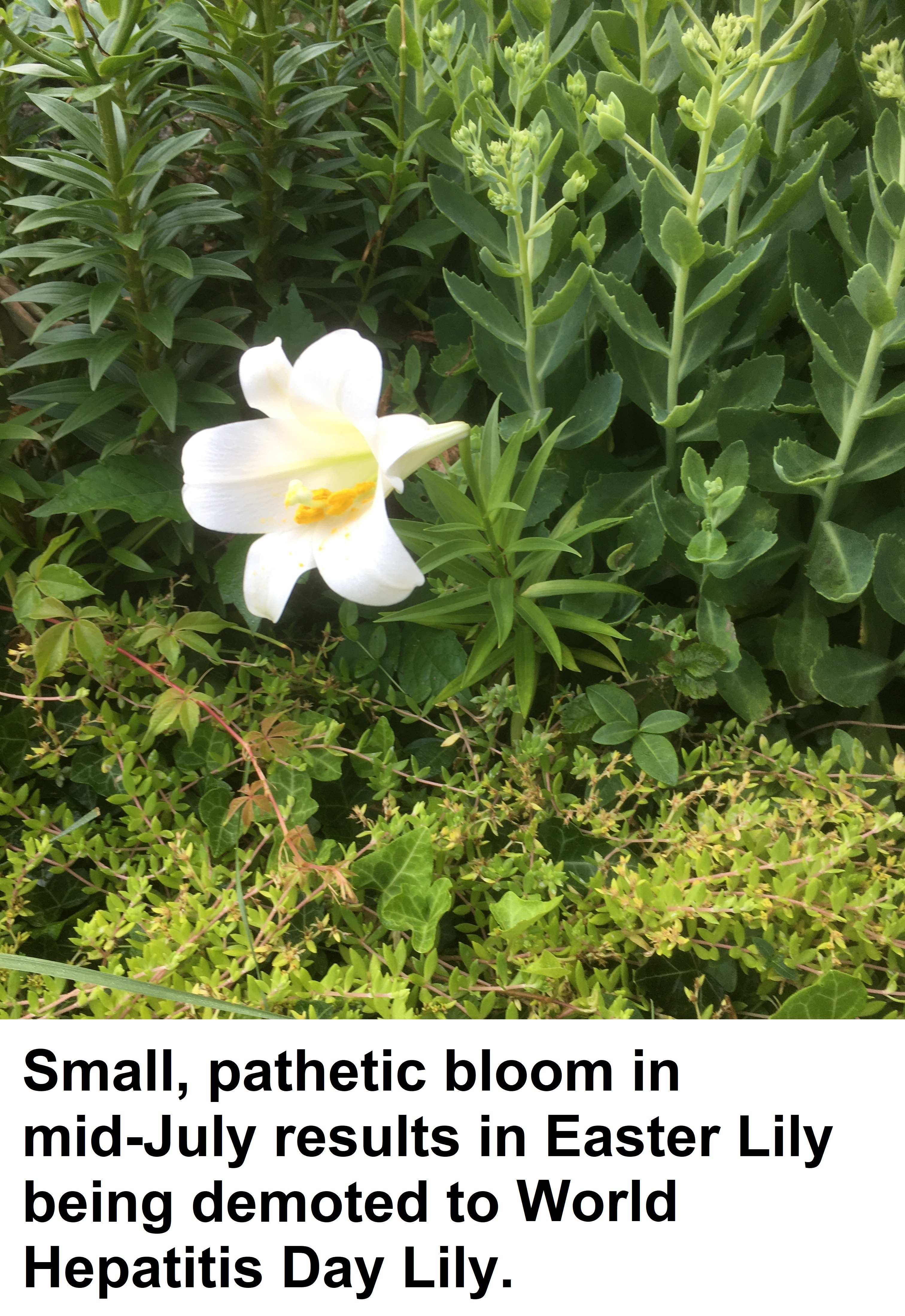 We are currently dealing with a loser in our household – our Easter Lily out back by our pond. The result? Take a look …