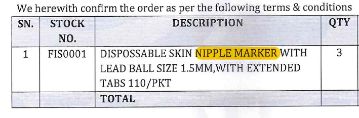 That’s right, my first order ever for Nipple Markers was waiting for me in my email inbox. I remember tittering when quoting this titillating product. I did my best to stay abreast of the quoted opportunity, and it paid off with an order, albeit not titanic. I may even take a celebratory nip tonight. If you are curious, Nipple Markers are used in radiology.