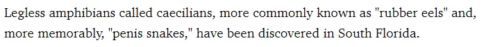 And really, where else besides Florida would you expect penis snakes to show up? Okay, I guess you can make cases for Louisiana, Mississippi, Alabama, and other states in the southern USA.