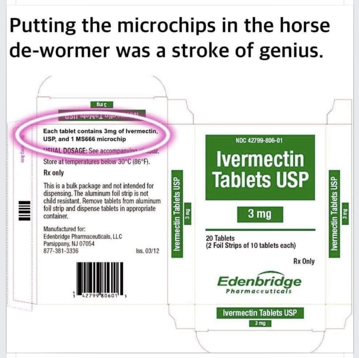 Also ironic is that Ivermectin tablets have microchips in them so the ranchers can keep track of which animals got dosed.