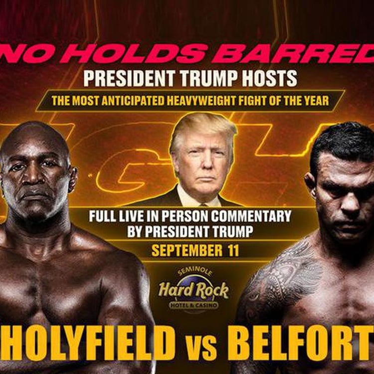 Talk about undignified. I mean, Evander Holyfield has really lowered himself to be associated with Trump. And what better way is there for a former president to commemorate 9/11 than to do play-by-play for a boxing match?