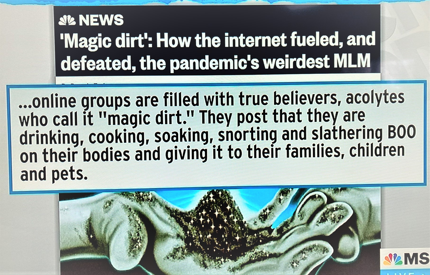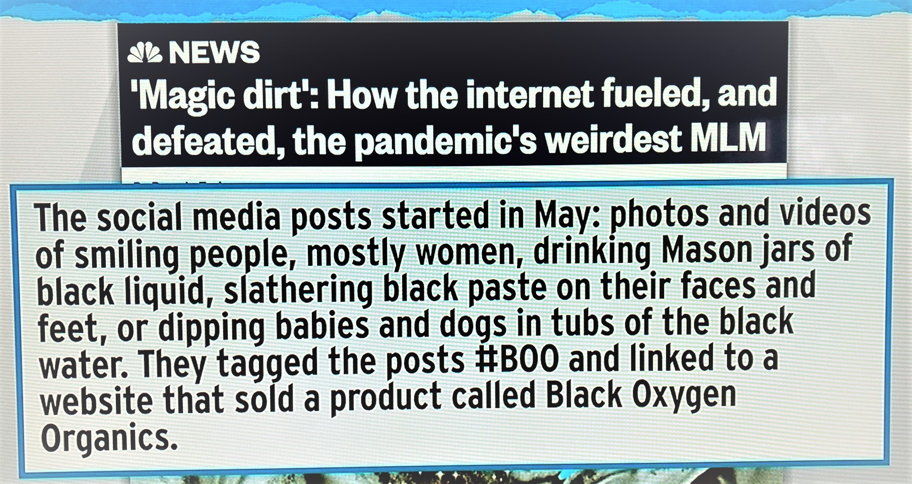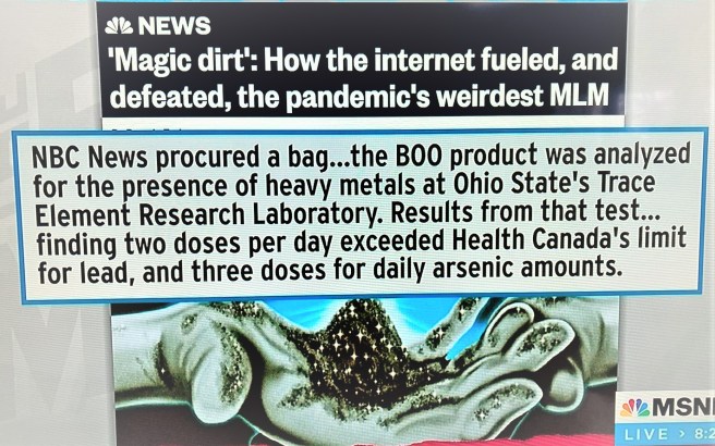 Okay, that makes sense now. Lead and arsenic will kill the person ingesting them, so I guess it can be claimed that it will also kill their Covid. I’m sure I can come up with safer dirt to sell.