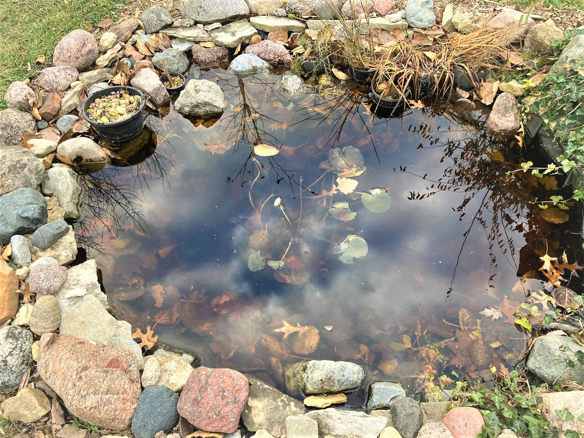 It turns out the peat bog is next to a landfill, which may explain the secret ingredients of lead and arsenic. I don’t have a peat bog or landfill nearby, but I do have a pond with muck on the bottom. Not much is happening in the pond from December through March. The frogs are gone. The pump is put away. The plants are dormant.