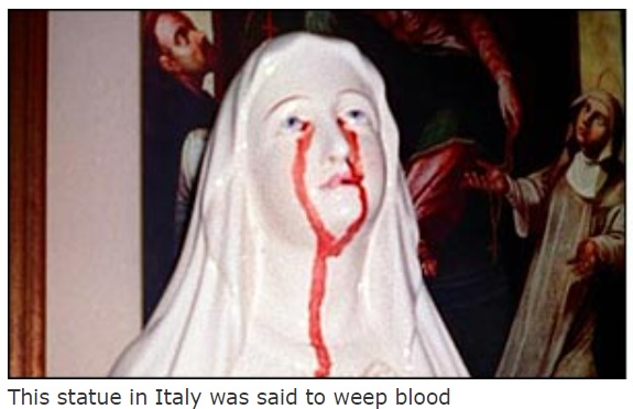 No, not that Madonna. You know, the Madonna, the Virgin Mary, mother of Jesus. Some of her statues have supposedly wept and really made a mess like this one.