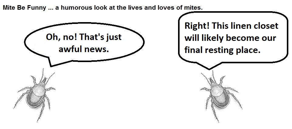 Well, is this truly the end of the line for our gallant mites? Will they be forever entombed in the linen closet? Have the Mite Be Funny Laundry Chronicles finally come to a merciful conclusion and terminated this weekly reader torment? Say your prayers and tune in next week to see.