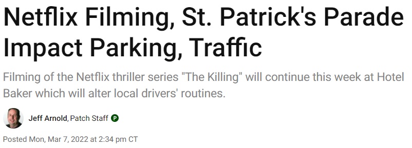 Yep, Netflix was coming to town with actor Michael Fassbender to film the series The Killing. Note to the local newspaper, italicize the names of TV series and only put quotes around the titles of specific episodes. Regardless, this is pretty big news for an area where this showed up today in my local news feed.