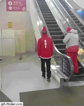 The woman yesterday was struggling as she was hung up on the handrail. I was concerned that she would end up tumbling down the escalator as a result of trying to extricate herself, likely to a certain doom. Old people and escalators are a bad combination.