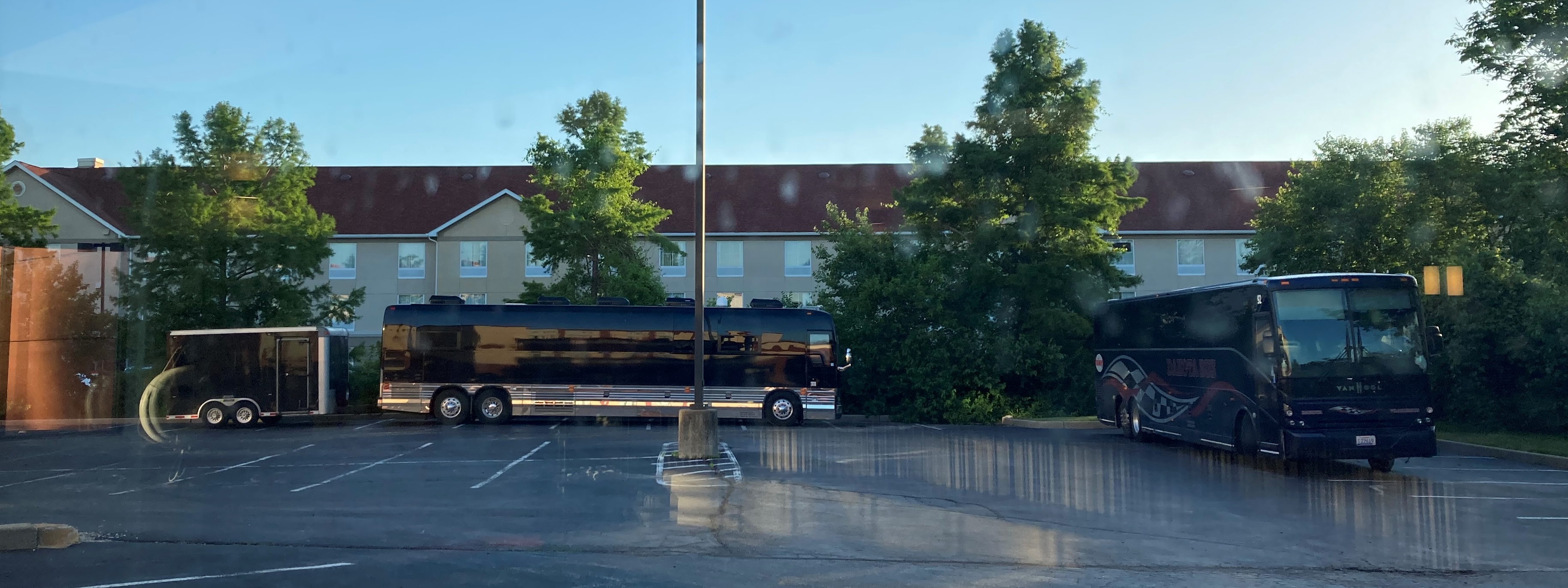 As I swam laps in the hotel pool the next morning, I spotted some touring busses parked outside.