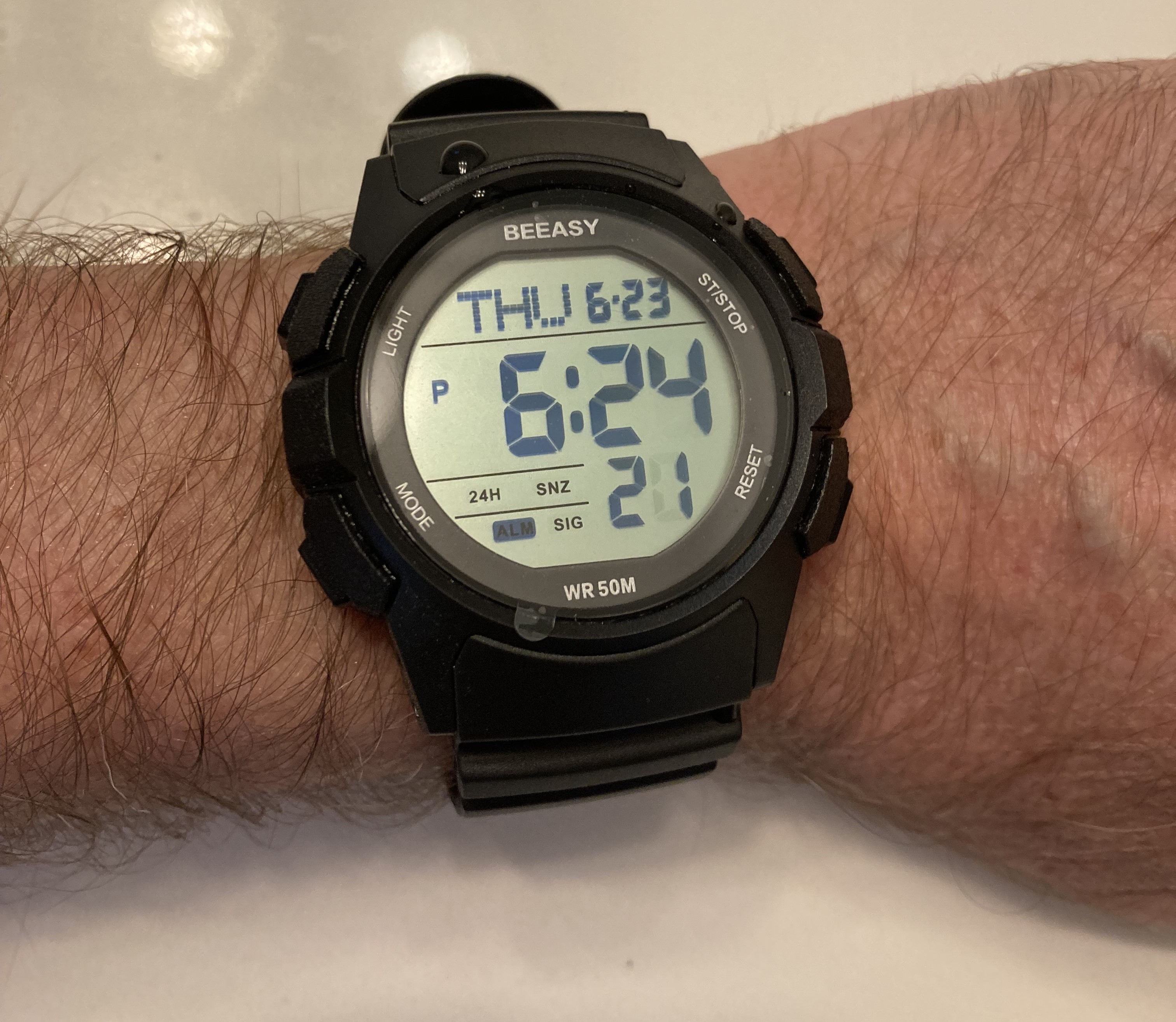 I do like the brand name of this watch – Beeasy (Be Easy?). It’s made in China, and I wonder if someone over there used Google Translate to come up with an American phrase for chill out. Be Easy is close, but with some possible additional connotations.