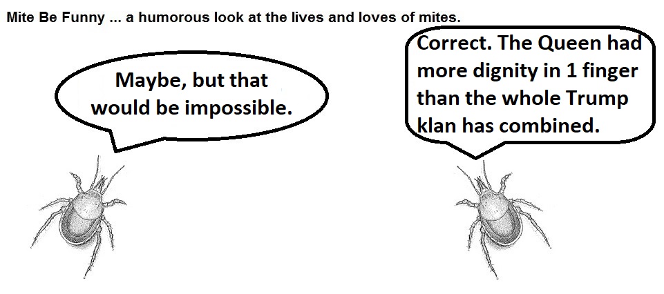 Mite Be Funny #291 – RIP Queen Elizabeth September 12, 2022 ~ Jim Flanigan Share this: Click to share on X (Opens in new window) X Click to share on Facebook (Opens in new window) Facebook Click to share on Tumblr (Opens in new window) Tumblr Click to email a link to a friend (Opens in new window) Email More Click to share on LinkedIn (Opens in new window) LinkedIn Click to share on Pinterest (Opens in new window) Pinterest Click to share on Reddit (Opens in new window) Reddit Click to print (Opens in new window) Print Like Loading... Related Published by Jim Flanigan View all posts by Jim Flanigan