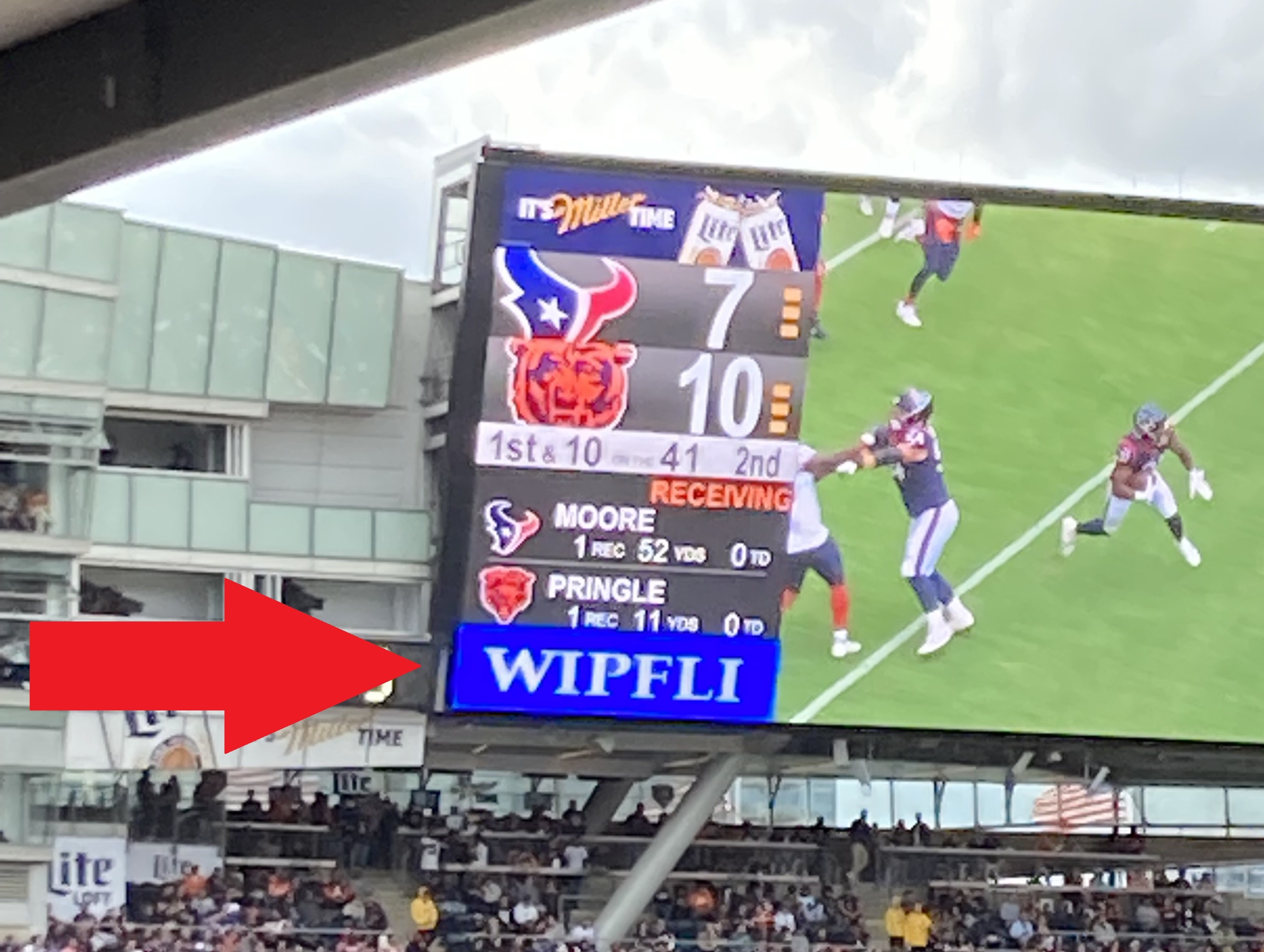 I thought the Bears may be going full MAGA with what I mistook for the QAnon slogan on the scoreboard.