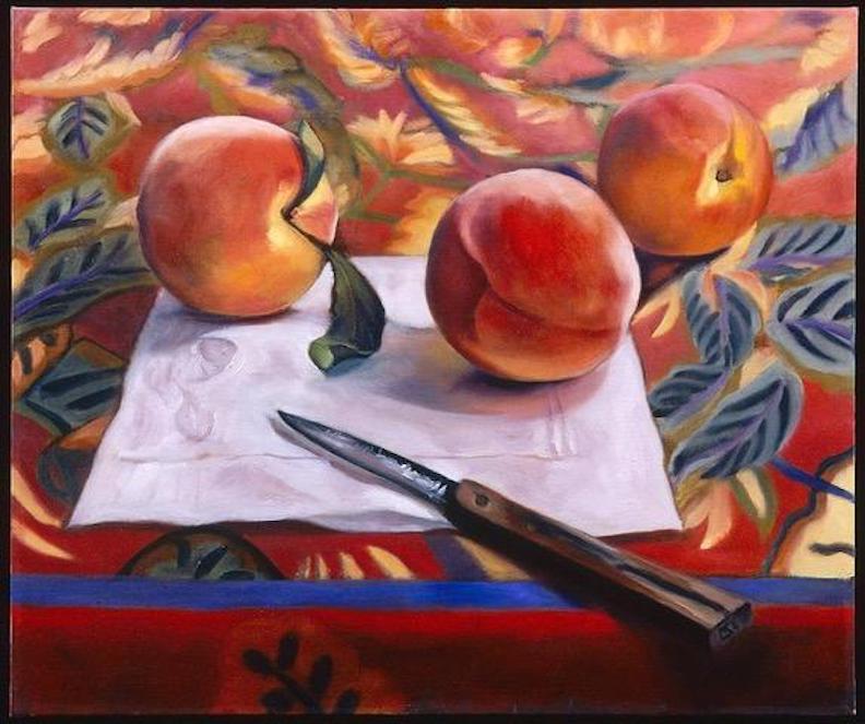 The peach on the left replied, “What are you so worried about? The knife’s pointing at me. And what did you think would happen to us? Do you think we’re posed like this for someone to do a still life oil painting of us?”