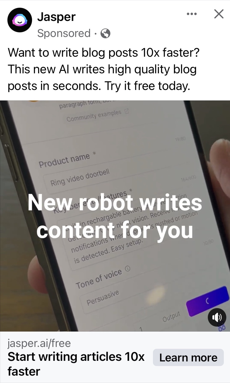 Well, that’s not going to work. I could use Aritificial Intelligence to help write it. I saw this ad the other day.