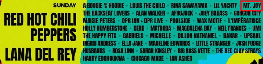 Listed right after … Yung Gravy? Well, I took a look at Sunday’s line-up, and they are listed in the same general area as Mt. Joy, a current favorite band of mine.
