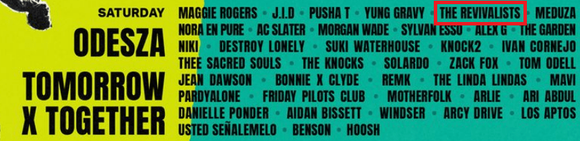 I saw Mt. Joy in concert pre-COVID, and I really enjoyed the show. I think my favorite was their singalong performance of “Astrovan.” My logic told me that if I liked Mt. Joy, I should like The Revivalists based on their Lolla listings locations.