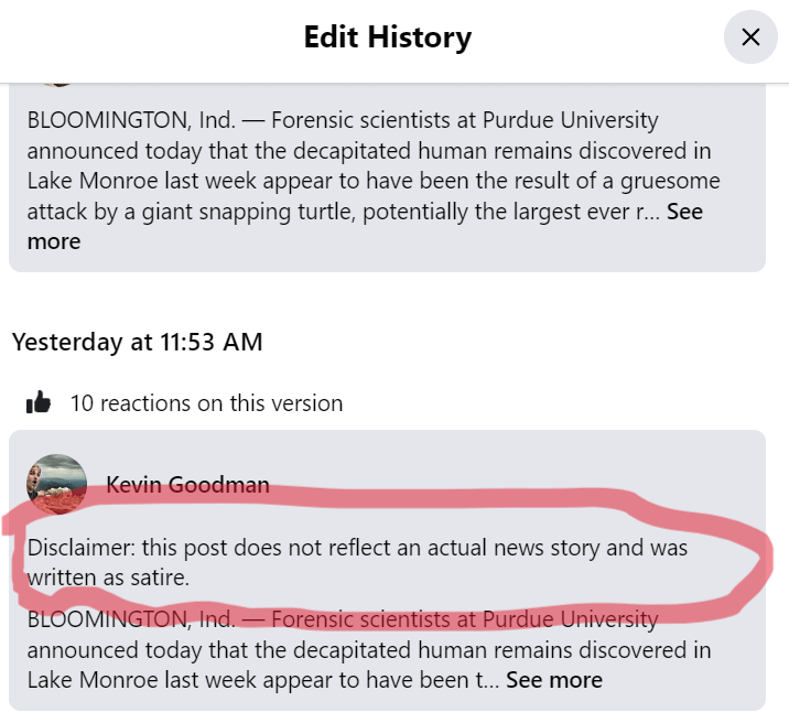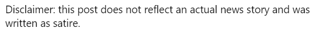 That’s right, it was not originally labeled as satire. It was only after residents became alarmed that the post was edited to add the disclaimer yesterday.