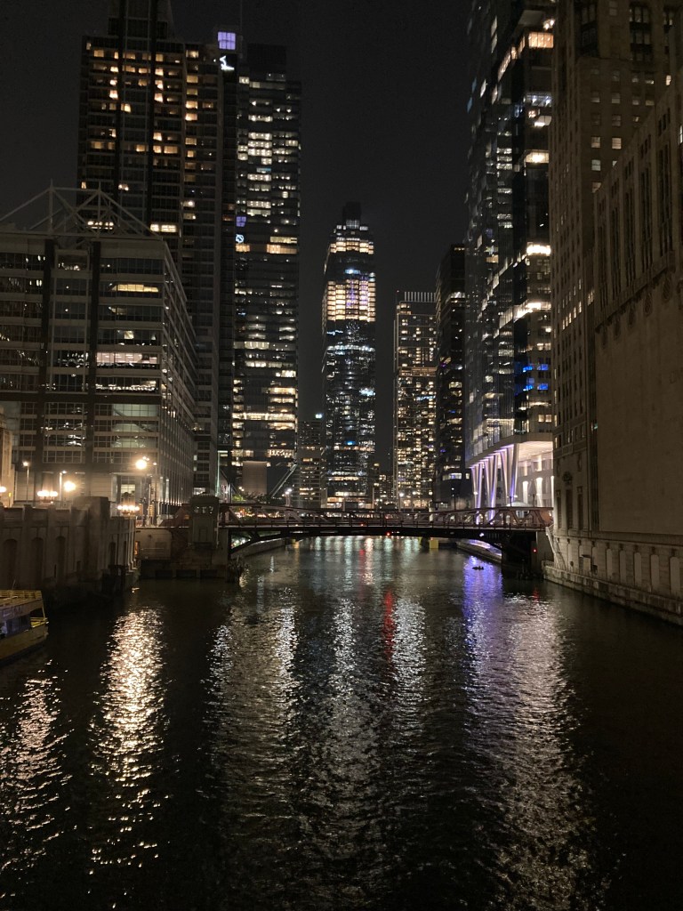 And here’s a cool shot looking north up the Chicago river at night.