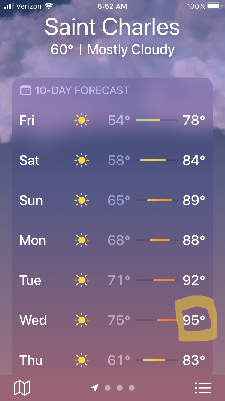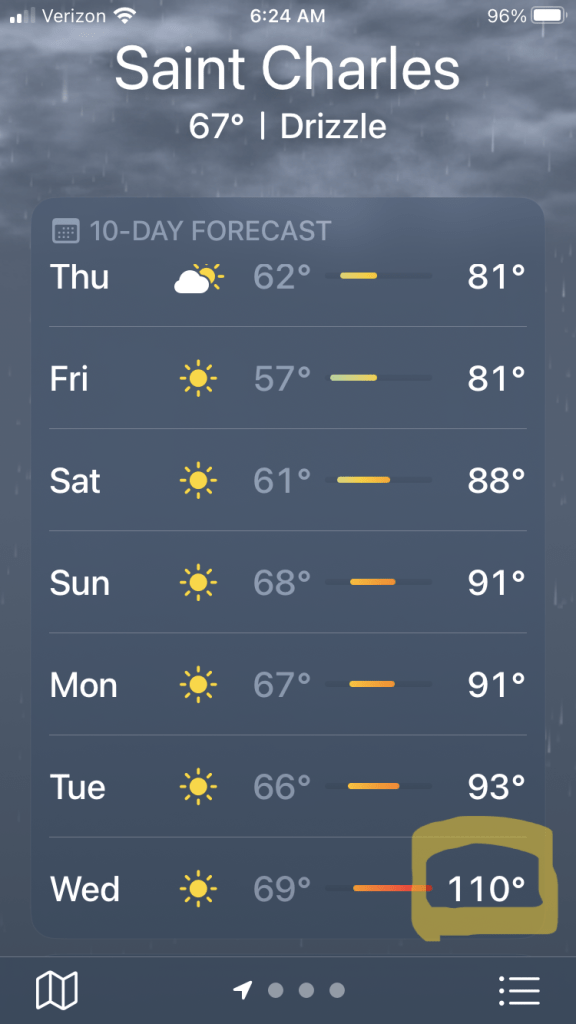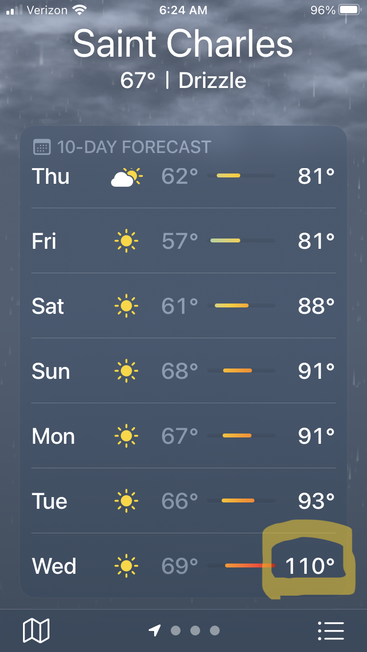 Look, I am not a climate change denier. I know that the US Southwest has roasted under sweltering, record-breaking, albeit dry heat this summer. But I’m in the greater Chicago area. Yeah, it gets hot here in the summer. We’ve used our air conditioning for a few days this year. But normally, 90F/32C is hot for us. And God Almighty, it gets humid here. You know, we have this enormous freshwater lake nearby that can make it feel like you’re breathing water at times.