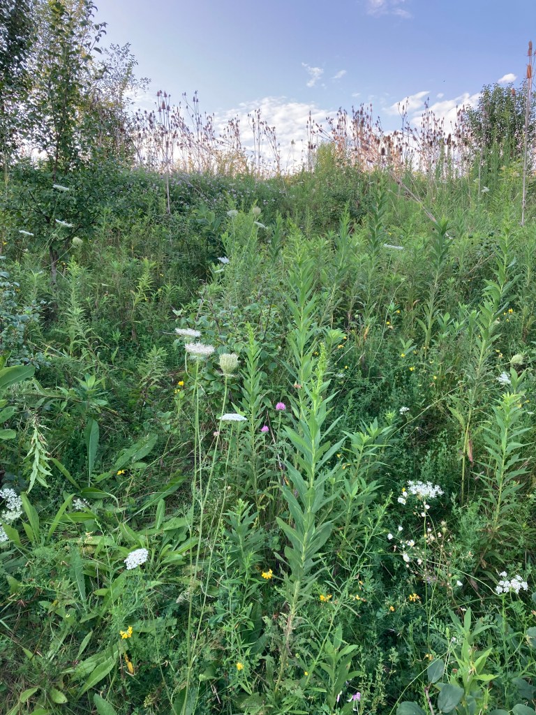Then I had to navigate the hill descent. It’s weedy, tricky, and slippery. First time I tried it, I fell and punctured my hand on a stick. Today it was not an issue. I finished Leg 2 and stripped down to swim trunks for the swimming leg.