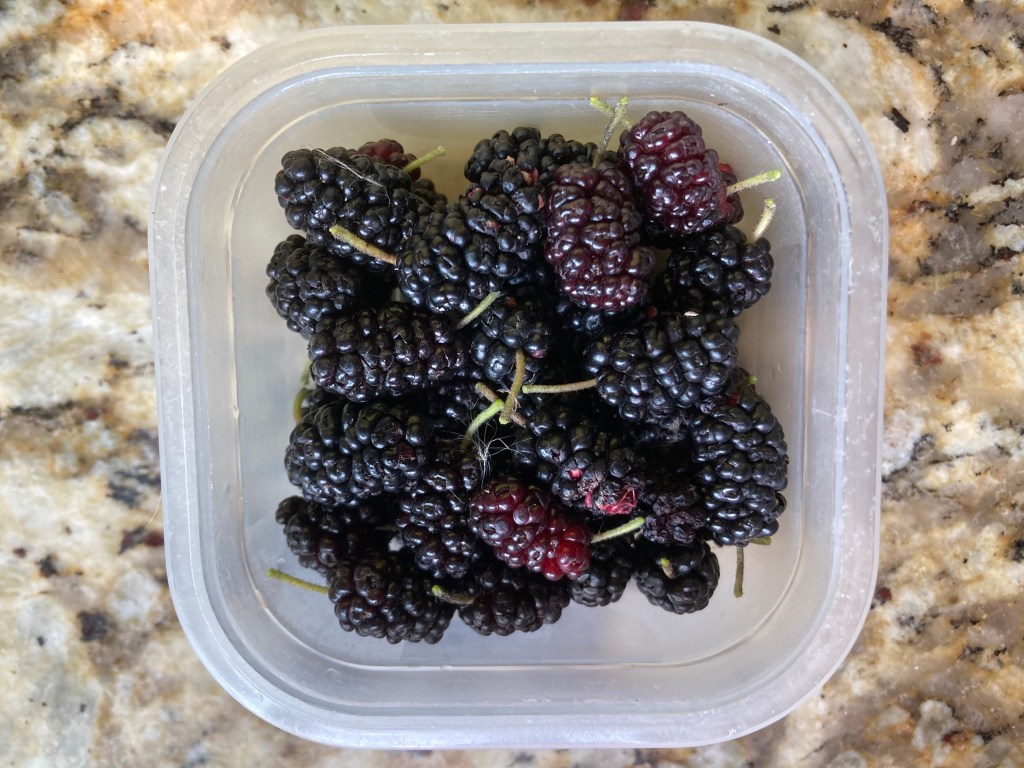 Of course, there was the mandatory berry picking for Leg 6. Although late in the season for mulberries, I’ve located a late-producing tree that gave me enough to garnish a few cereals, yoguts, etc.