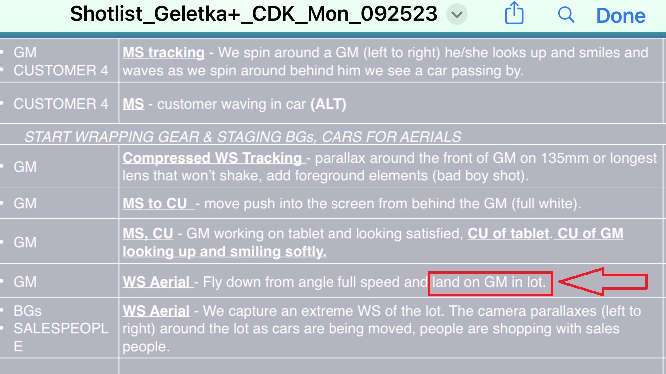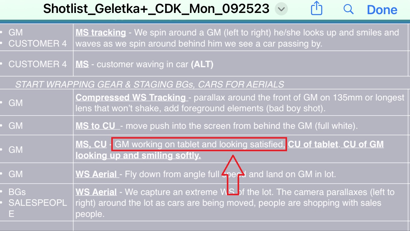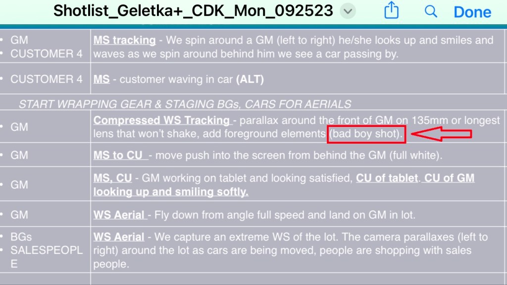 I wish they hadn’t asked me to submit a short sample video for this shot of the GM smiling and waving.