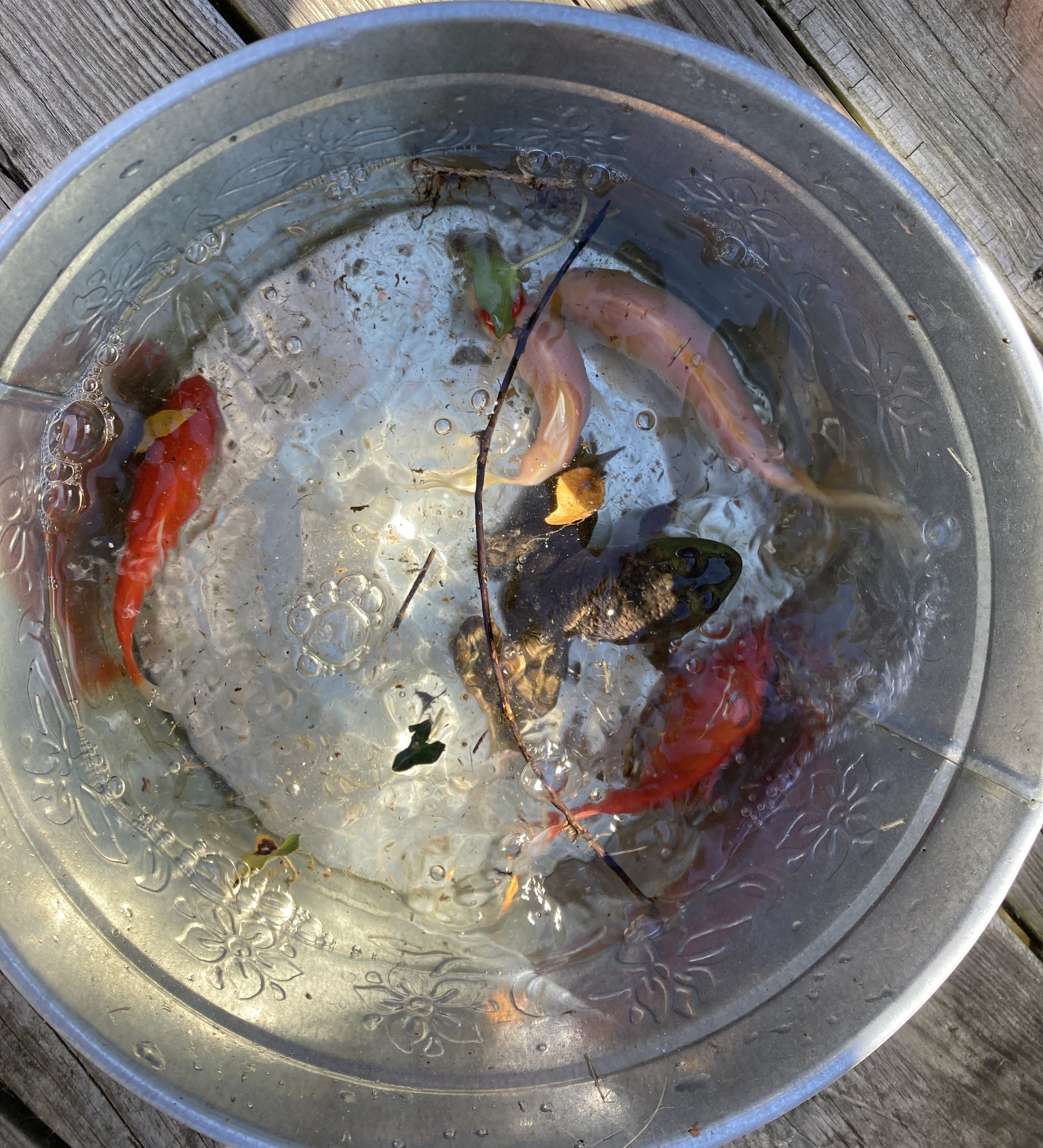But then the bottom dropped out of the temperatures and summer abruptly ended. I had to fish the fish and the frog out of our pond that freezes solid in winter and find a new home for them.