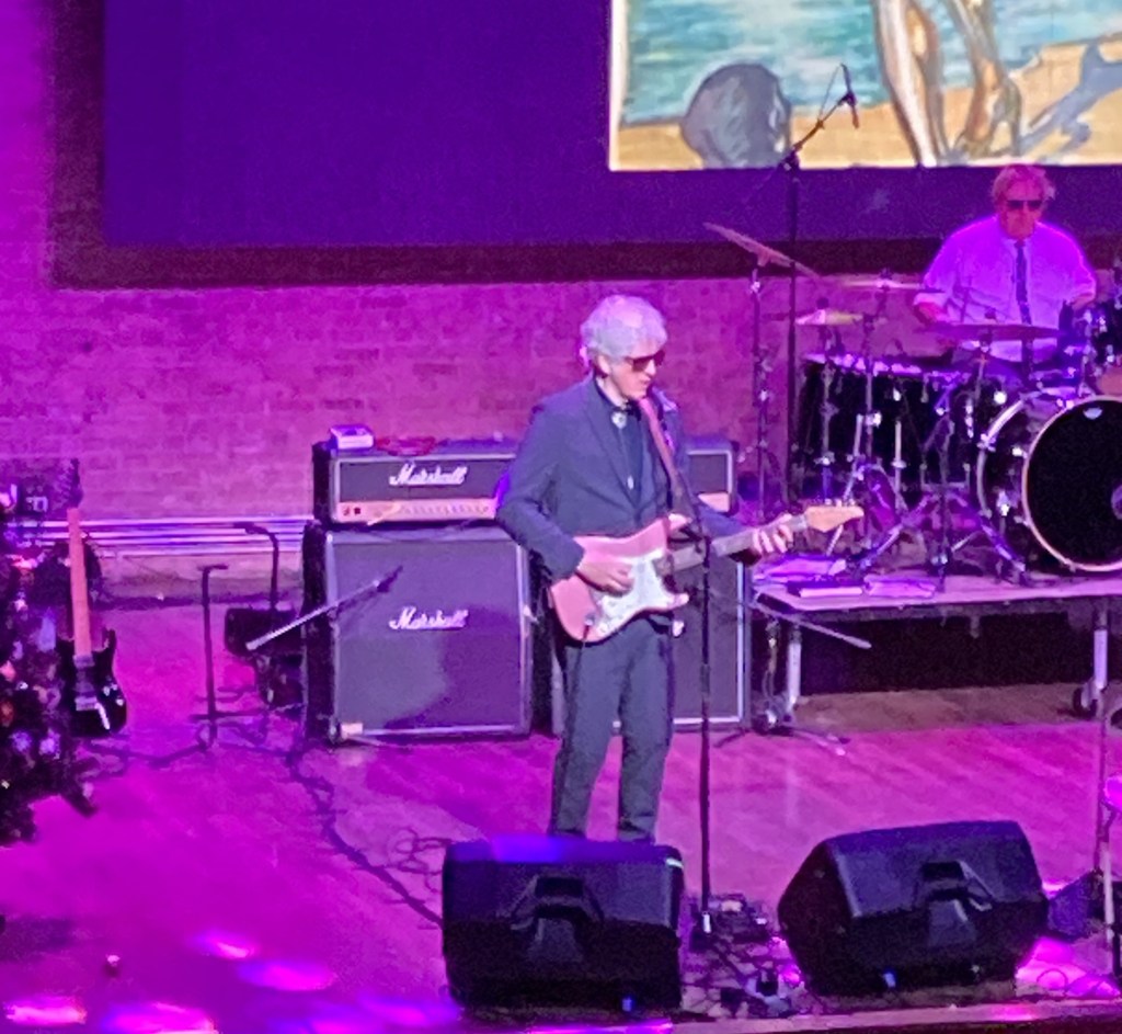 So, it was with some excitement that I saw The Tubes from the mid-70s coming to my little hometown theater advertised with 3 original members including wacky frontman Fee Waybill, known for his many wild costume changes during a concert. That’s how their extended tour that appears to have started in 2022 was touted. Sadly, along the way, one of the three original members passed away. Down to 2, but quite a duo, Fee Waybill and Roger Steen, writer of their cheeky song “White Punks on Dope.”