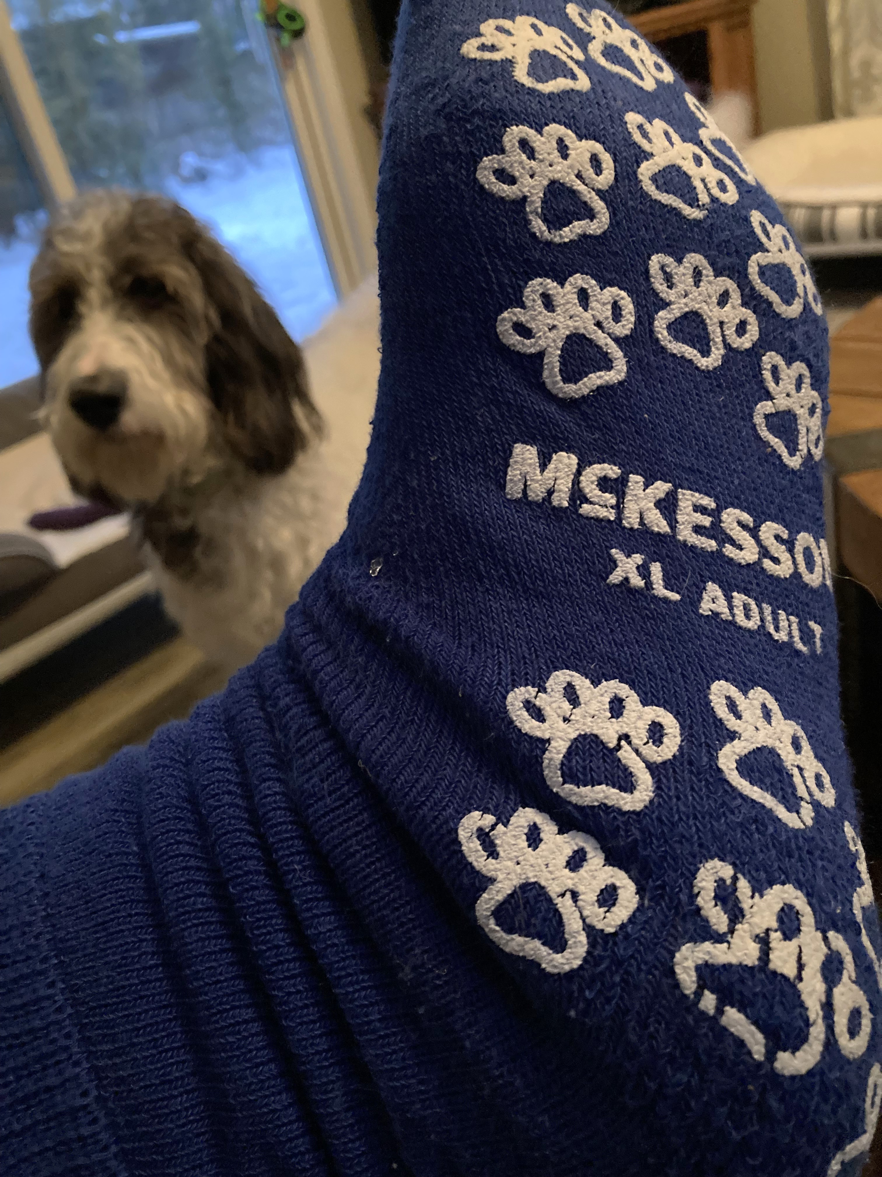 That was my medical dilemma. But I remained strong. I walked out pieless. My colon was certified pie-free for my colonoscopy. And I was rewarded handsomely after my clean colonoscopy. Take a look at the snazzy socks I got to keep after the procedure.