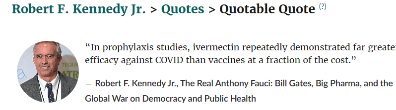The ironic part of this is that Ivermectin is a livestock de-wormer, and RFK Jr. still ended up with a brain worm. Thanks, but I’ll stick with medical science as I say …