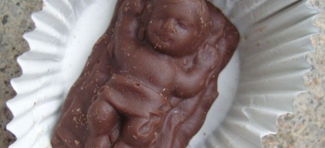 While waiting in line at a local sweet shop, I could not take my eyes off their chocolate nativity for sale while store security did not dare take their eyes off me for obvious reasons.