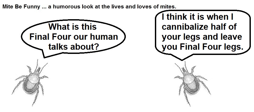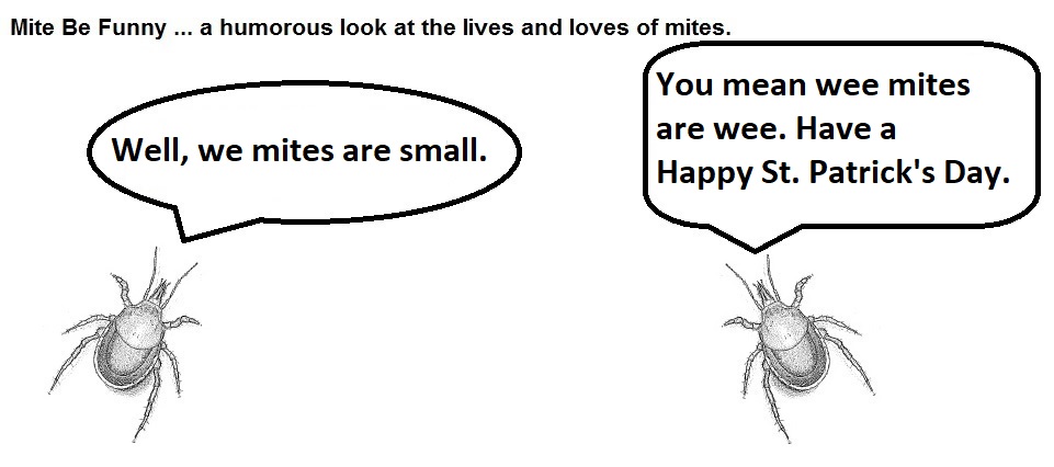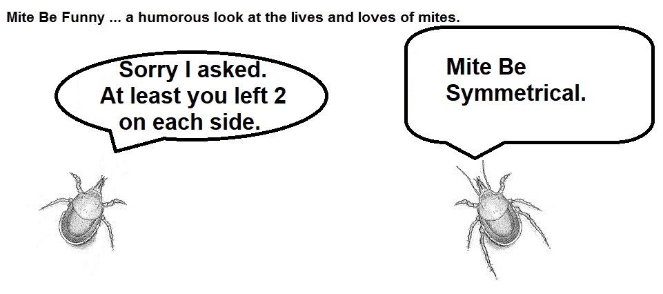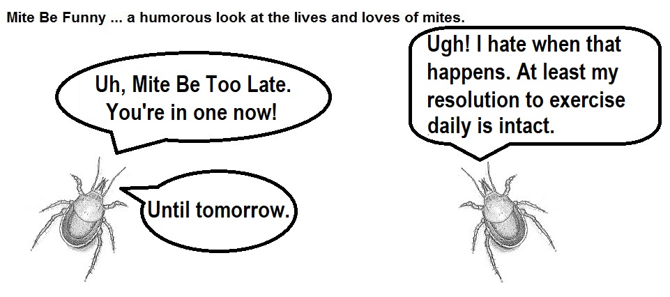 From my last post, you may have gotten the idea that I would be writing more about interesting topics which would logically not include mite-based cartoons. Well, I workshopped the concept, and I found that my focus group was fascinated by mite-based adventures. I will clarify that my focus group consisted of my two dogs and involved choosing treats to define their blog preferences. But who am I to deny science?