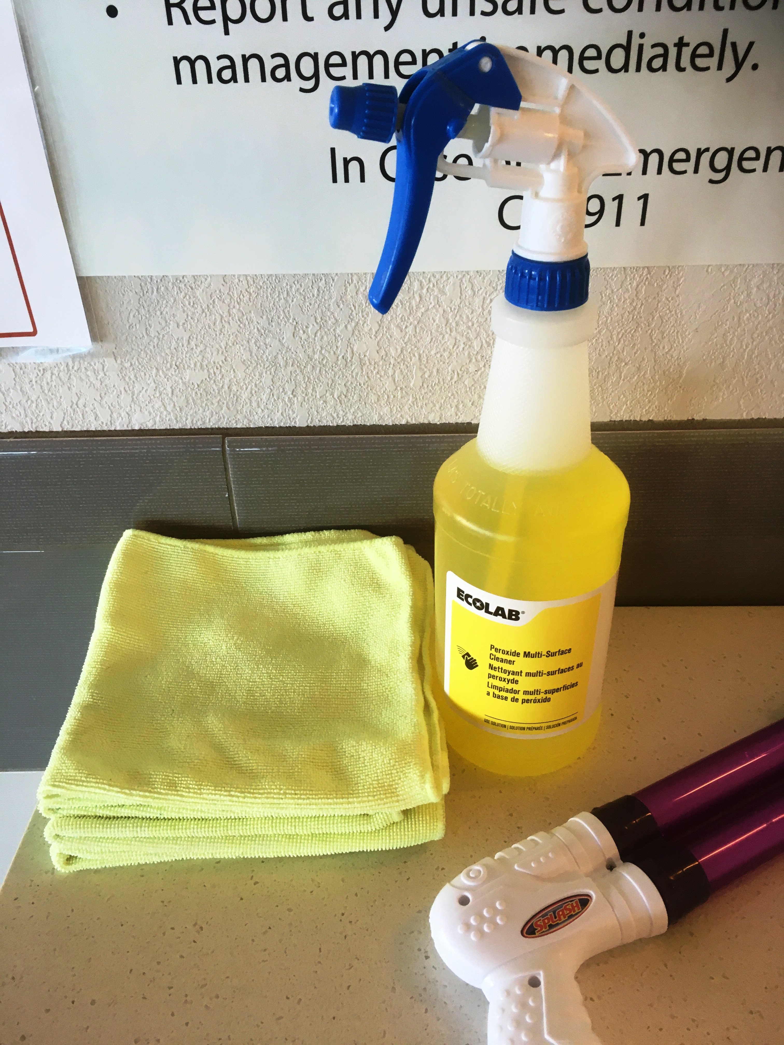 There really wasn’t anything for me to wipe down by the pool, but after some thought, I knew just what to do. I dumped the bottle into the pool. It seemed like the only logical thing to do.